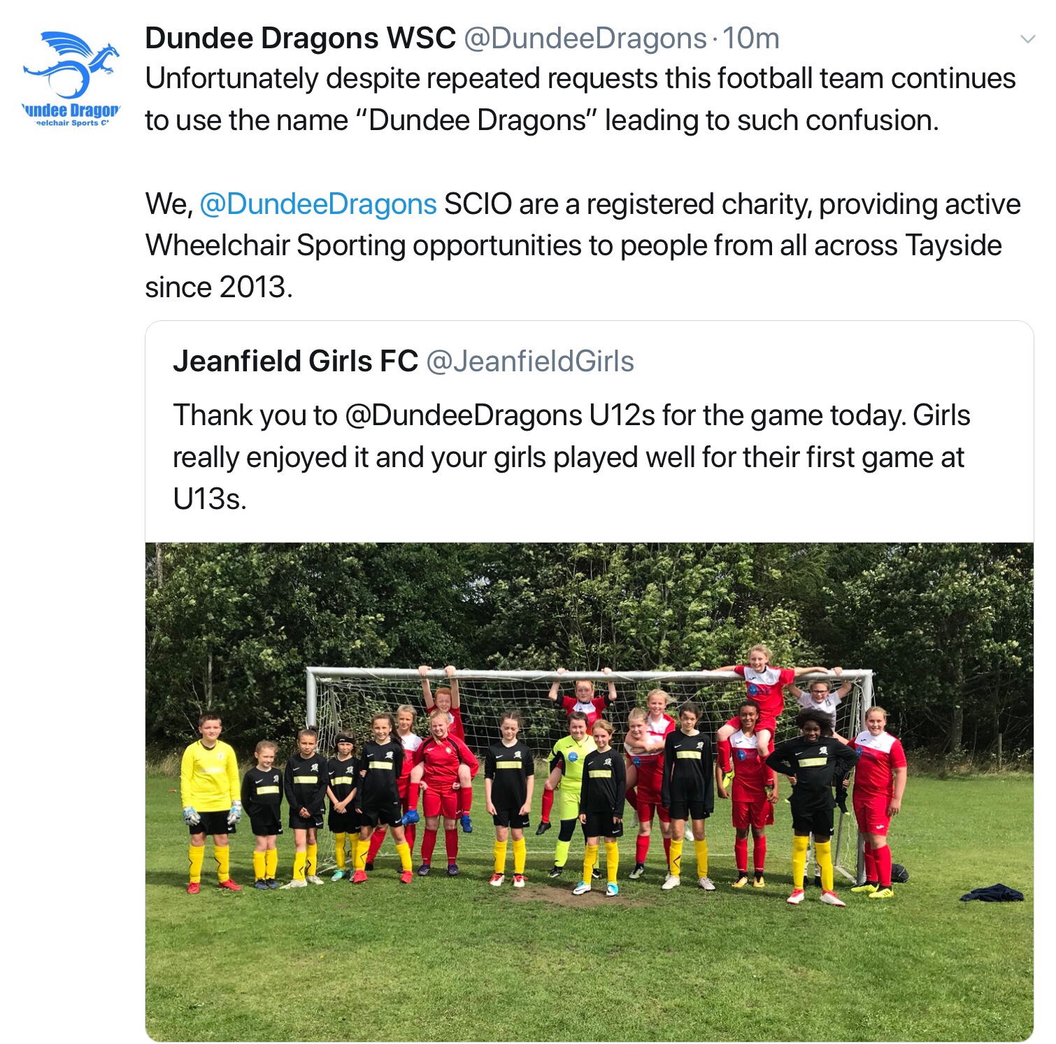 We are aware of a girls football team in the Dundee area using the name “Dundee Dragons” but who are in no way affiliated with our charity.